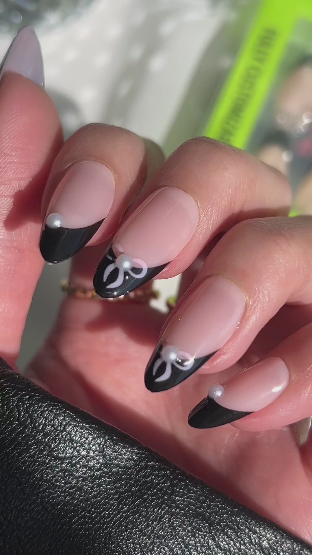 Nails on pointe! These adorable almond nails have a black tip complete with bow accents to give you a major ballet-core vibe. Grab these press-ons for a customizable set that’s pretty and practical—whether you’re going to ballet practice or to a party.