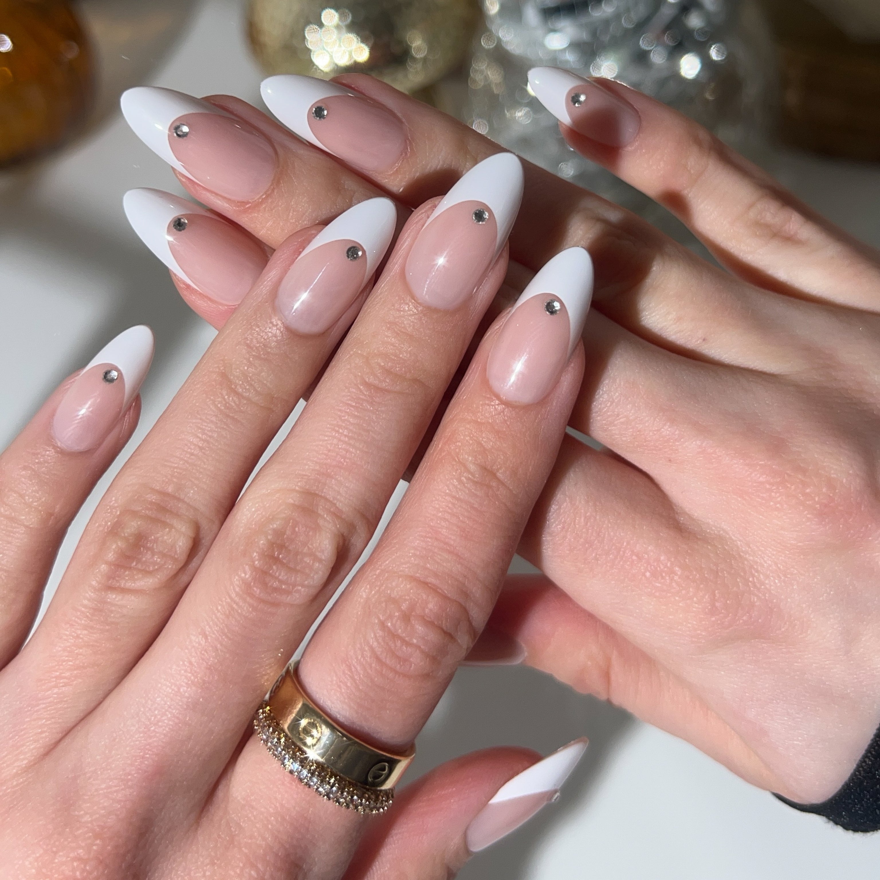 Apply a small amount of nail glue to one finger, press on nail, and hold for 25 seconds ensuring there is no air space in-between
