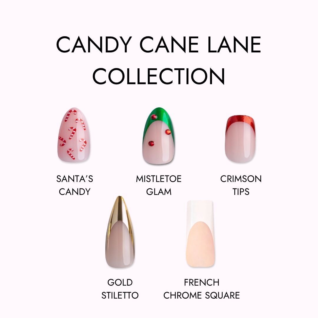 Step into your holiday spotlight with the Candy Cane Lane Collection — a dazzling lineup of press-on sets that match your mood, your moment, and your merry magic.