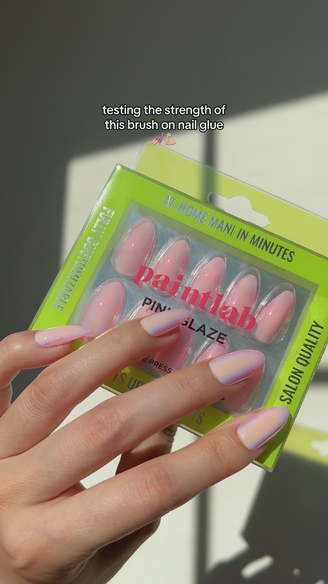 - Glue and Press - Apply a small amount of nail glue to one finger, press on nail, and hold for 25 seconds ensuring there is no air space in-between