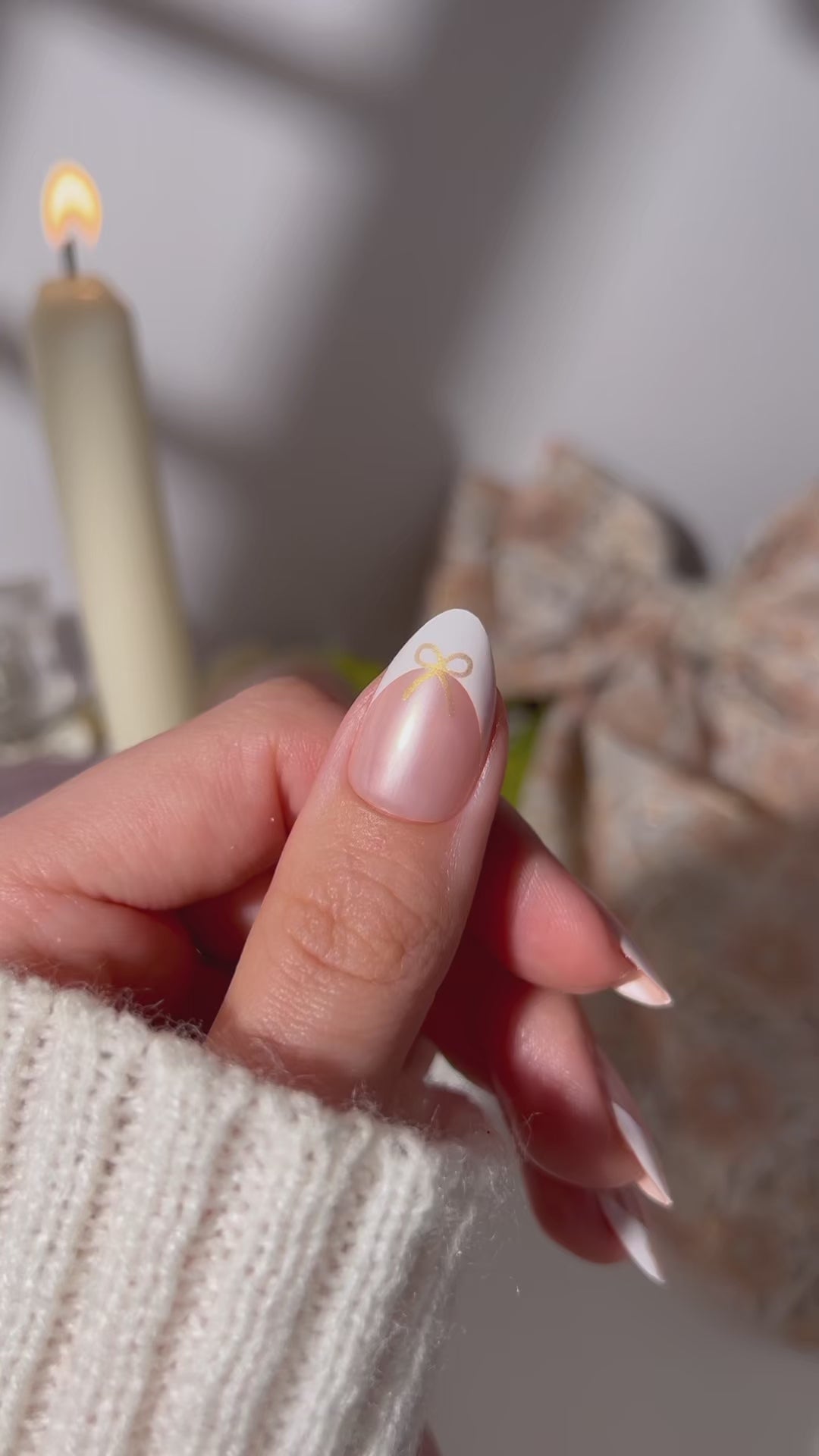 Turn up the charm with our Frenchie Bow set. These almond-shaped press on nails serve elegance with a playful twist!