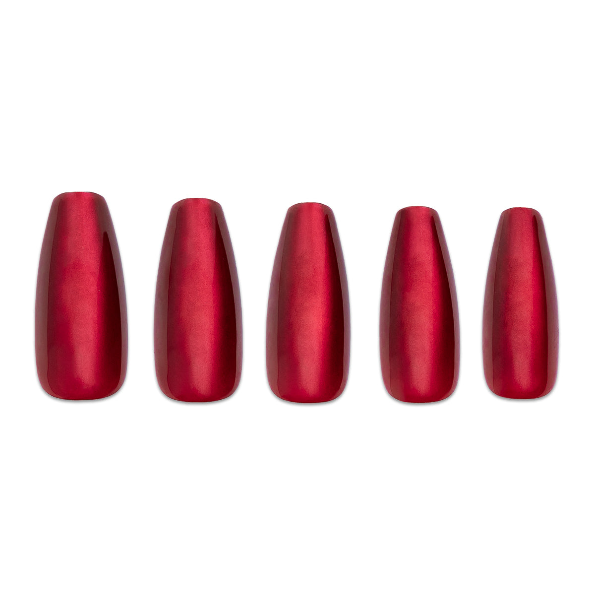 Make a bold statement with the Red Ruby Coffin Press-On Nails.