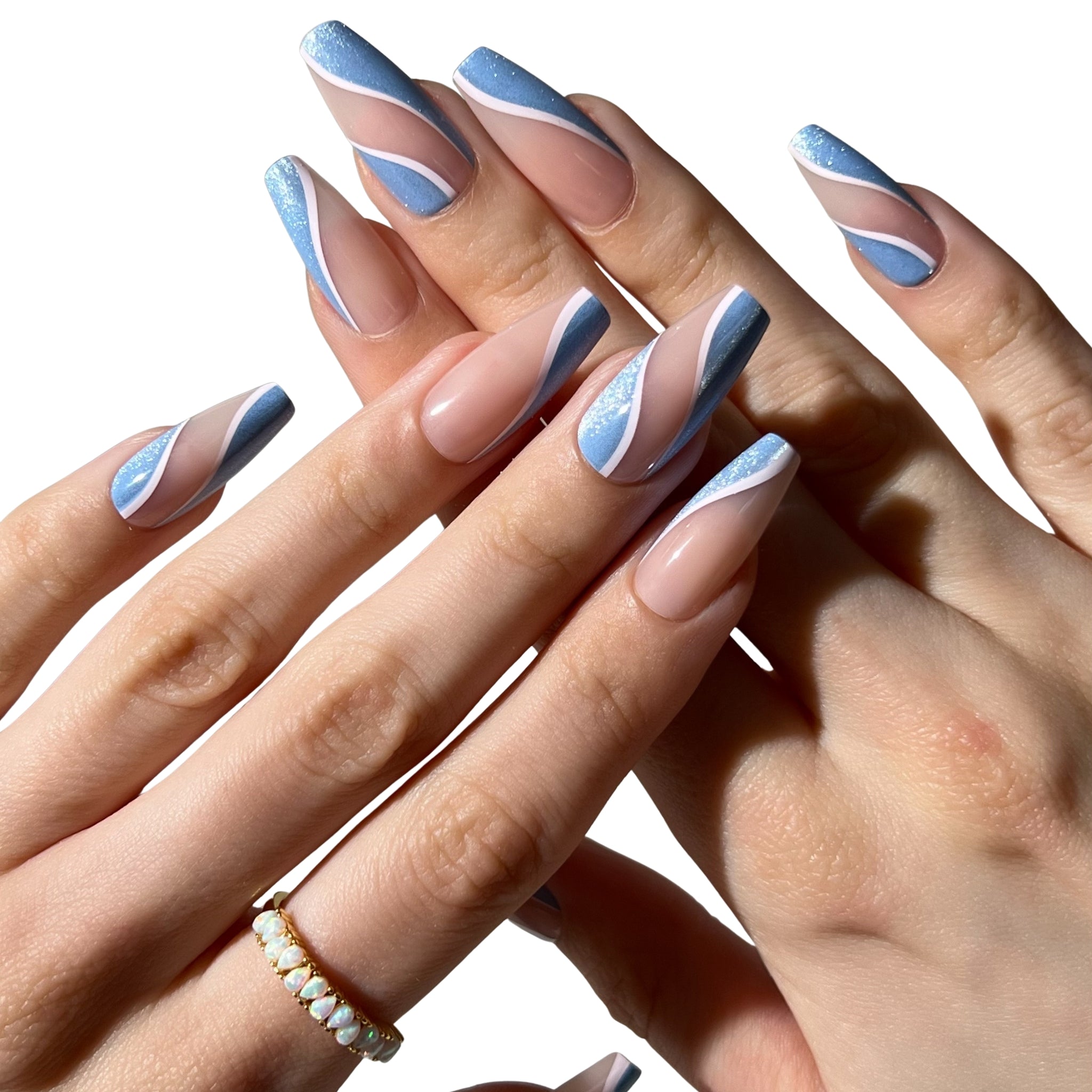 Channel ocean-inspired elegance with the Celestial Waves Press-On Nails.