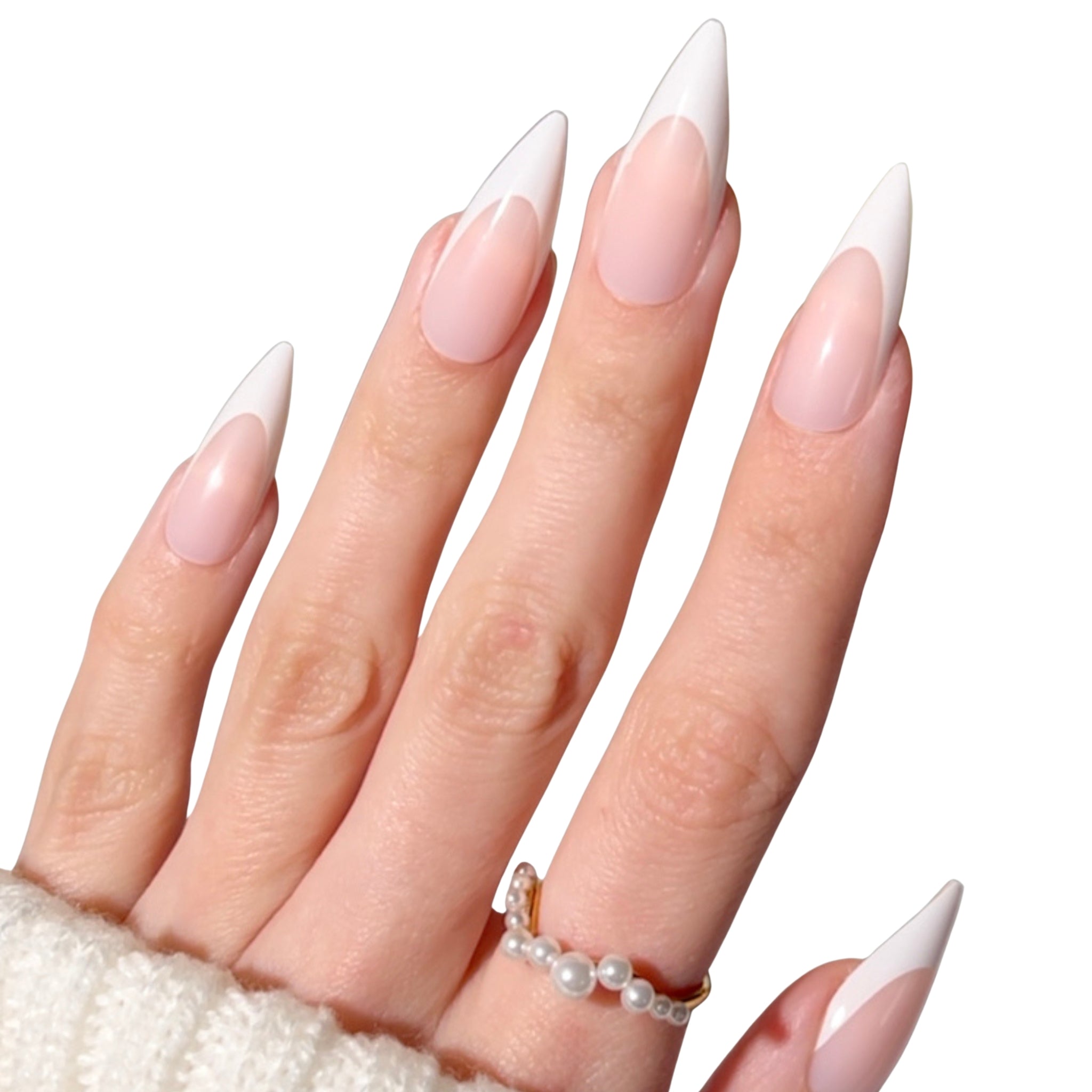 Tres Chic! The classic french tip, in a long length for that ultra-chic look. Customizable so you clip and trim to your preference.