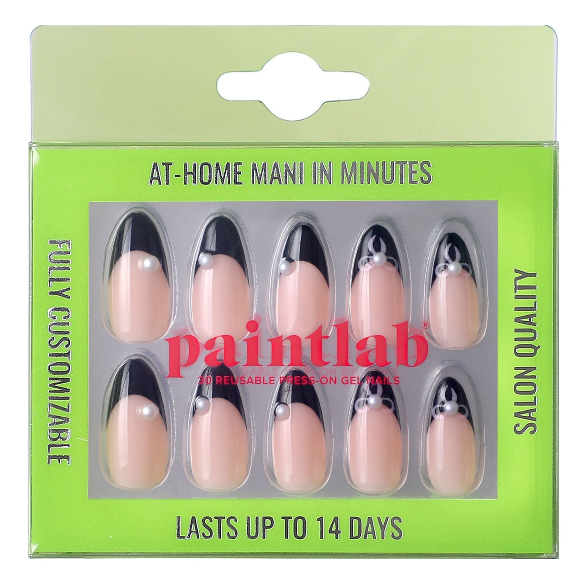 Nails on pointe! These adorable almond nails have a black tip complete with bow accents to give you a major ballet-core vibe. Grab these press-ons for a customizable set that’s pretty and practical—whether you’re going to ballet practice or to a party.