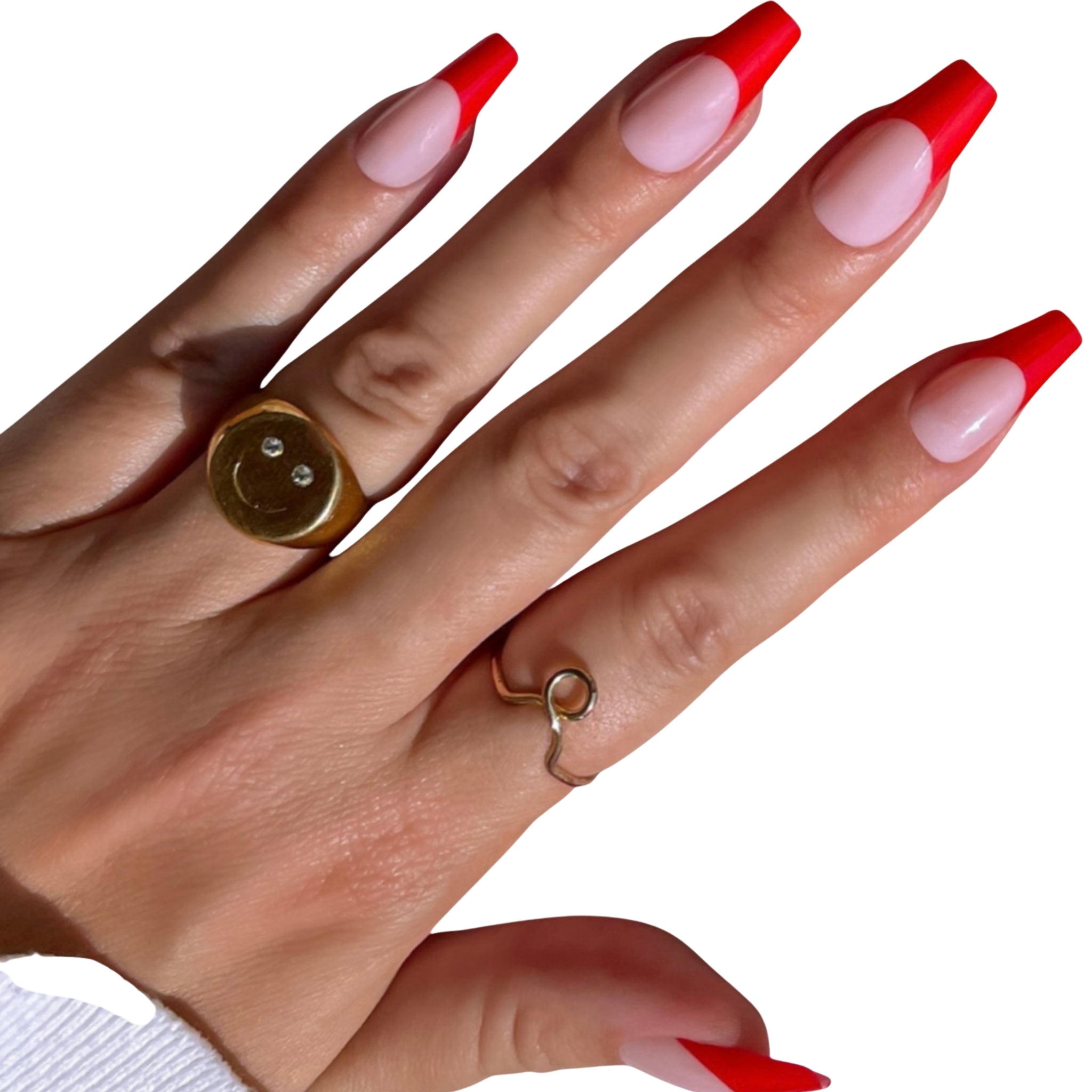 Elevate your look with vibrant red press on nails featuring a twist on the classic French tip, and let your confidence shine through. Whether you're stepping out for a special occasion or simply expressing your unique style, these nails are sure to turn heads and leave a lasting impression.