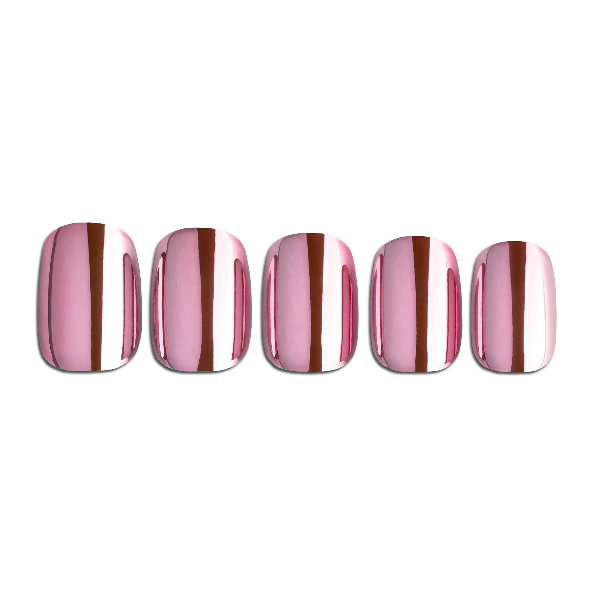 Rose Chrome Press-On Nails deliver instant glam with a modern metallic twist. Featuring a glossy pink mirror chrome finish on a short square silhouette, this set is sleek, bold, and effortlessly chic. Perfect for everyday wear or special occasions, Rose Chrome nails give you that high-shine, salon-quality look in minutes.