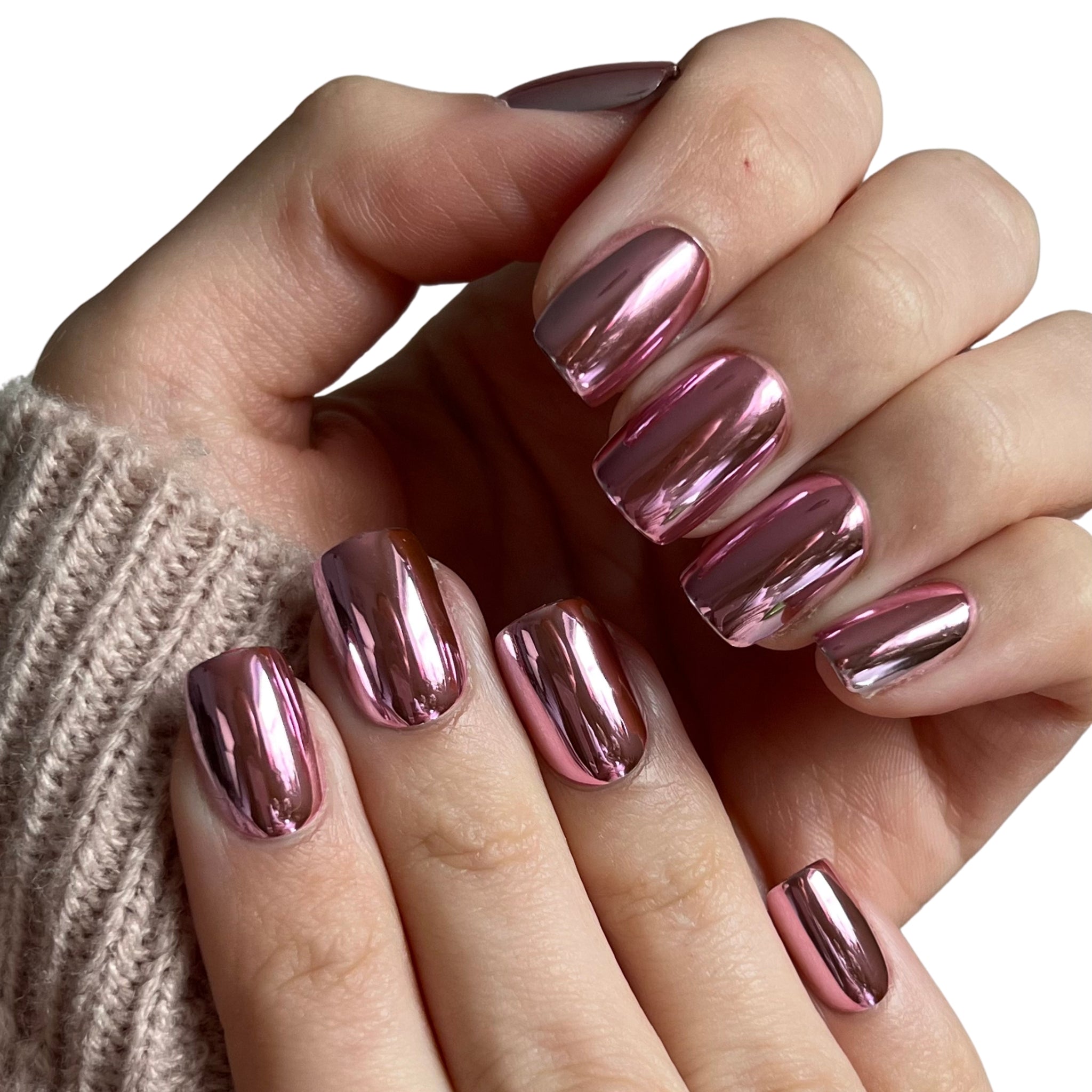 Rose Chrome Press-On Nails – Almond